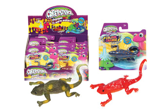 Watch this scaly friend transform before your eyes! Our Creepsterz Colour Changing Lizard shifts from cool tones to vibrant hues when placed in warm water, creating a magical surprise every time. Perfect for curious kids who love interactive toys and nature-inspired fun. Simply dip it in warm water to reveal the hidden colours, then watch it change back as it cools. A delightfully creepy companion that brings wonder to bath time or playtime adventures!