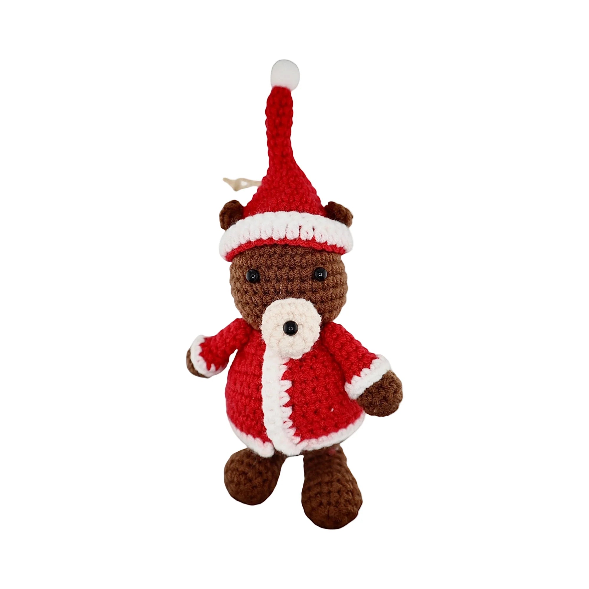 Bring festive cheer to your tree with this adorable crocheted Christmas bear! Hand-crafted with meticulous detail, this charming ornament features a lovable bear dressed in a cheerful holiday costume, ready to spread seasonal joy. Perfect for adding a whimsical touch to your decorations, this unique hanging piece celebrates the warmth of handmade craftsmanship. A delightful gift for crochet enthusiasts and Christmas lovers alike.
