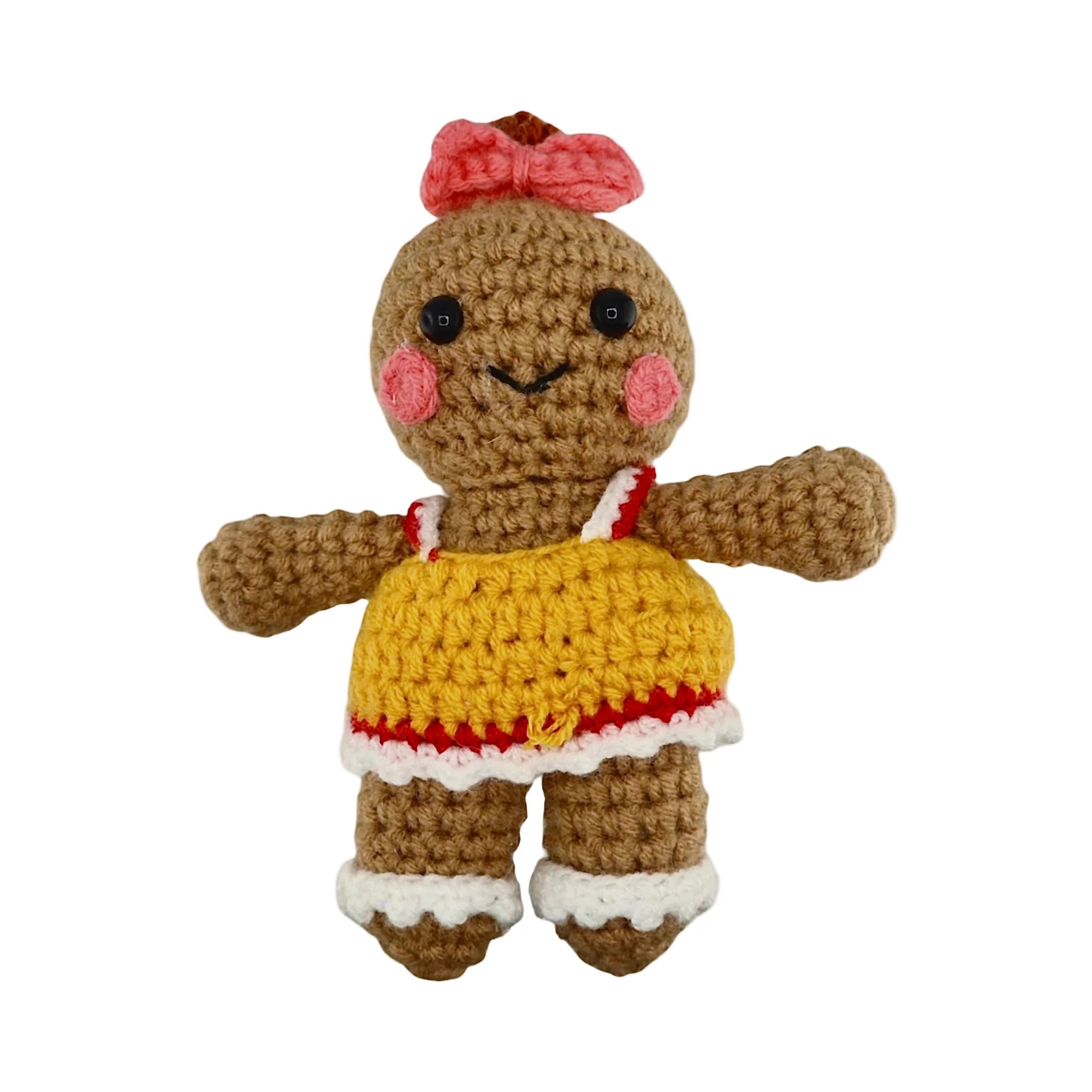 Bring festive cheer to your tree with this adorable crocheted gingerbread girl! Hand-crafted with cosy charm, she features a cheerful smile, colourful details, and a sturdy loop for easy hanging. Perfect for adding a whimsical touch to your Christmas decorations, this delightful ornament celebrates the playful spirit of the season. A sweet addition to any holiday display that's sure to spark smiles.