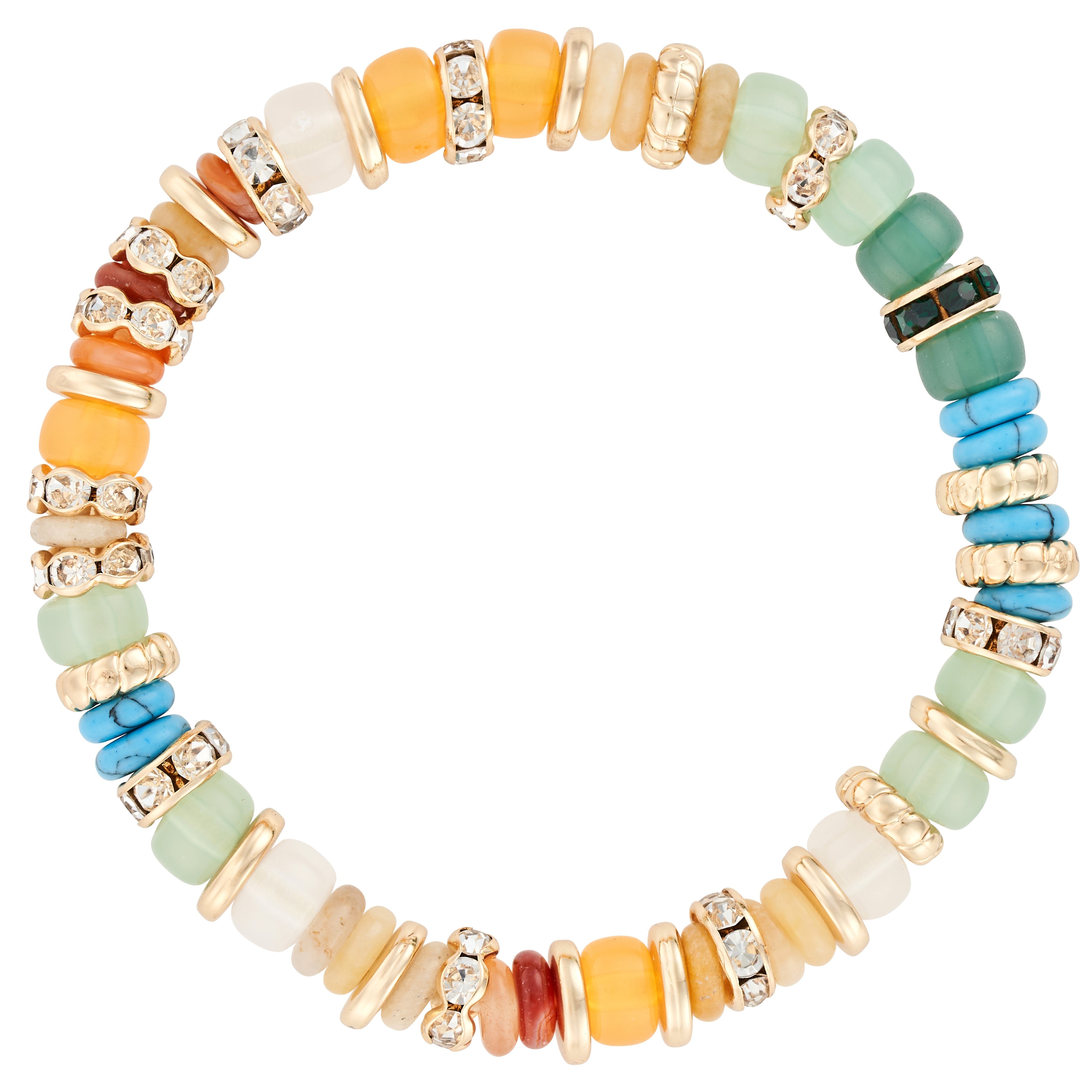 Add a touch of sparkle to your wrist with this playful gold-coloured crystal bead stretch bracelet. Its flexible design ensures a comfy fit, while the shimmering beads catch the light with every movement. Perfect for brightening up any outfit, this bracelet combines effortless style with a dash of fun.