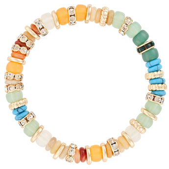 Indulgence - Gold Colour Beads Crystal Stretch Bracelet