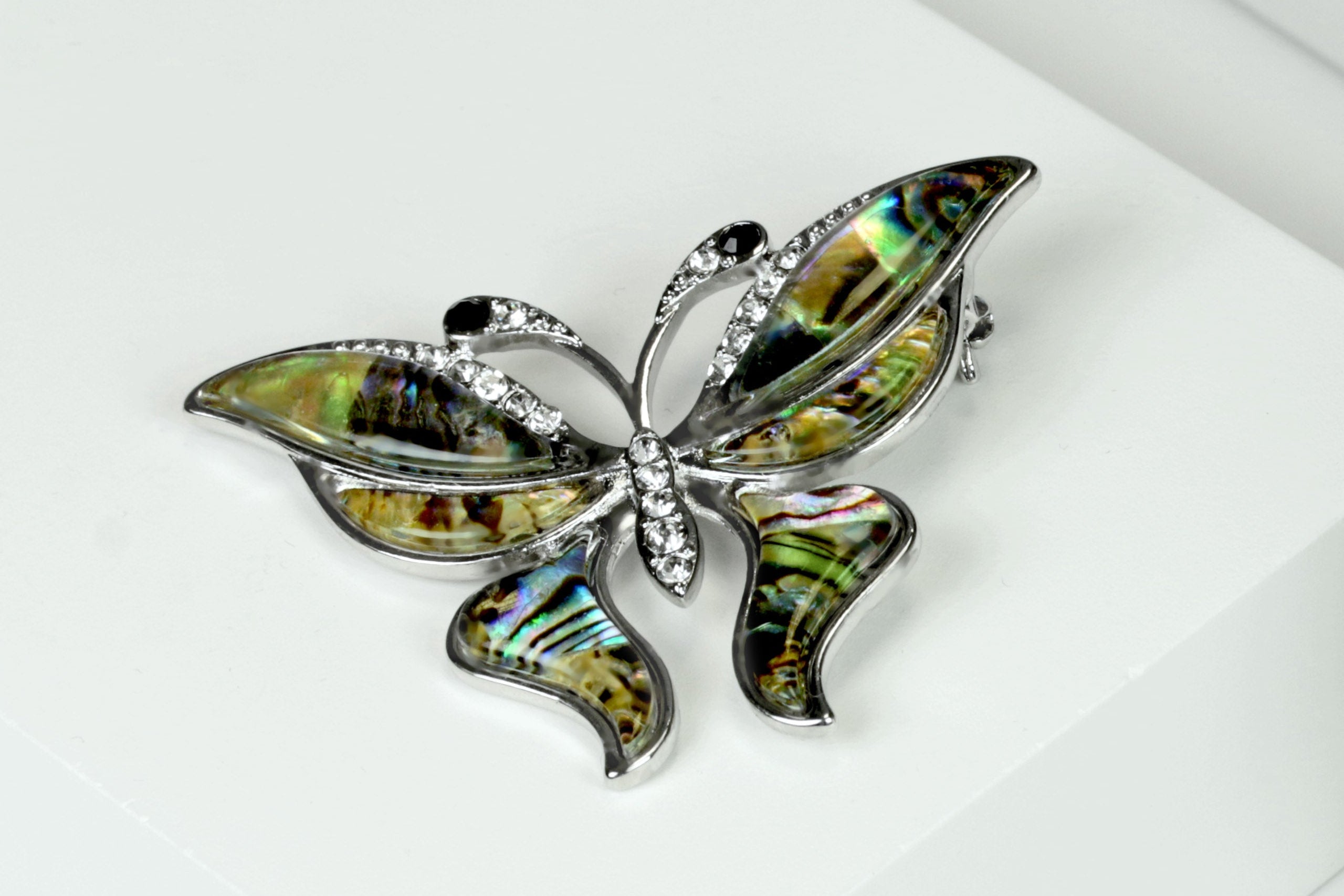 Indulgence - Rhodium Abalone Butterfly Crystal Brooch