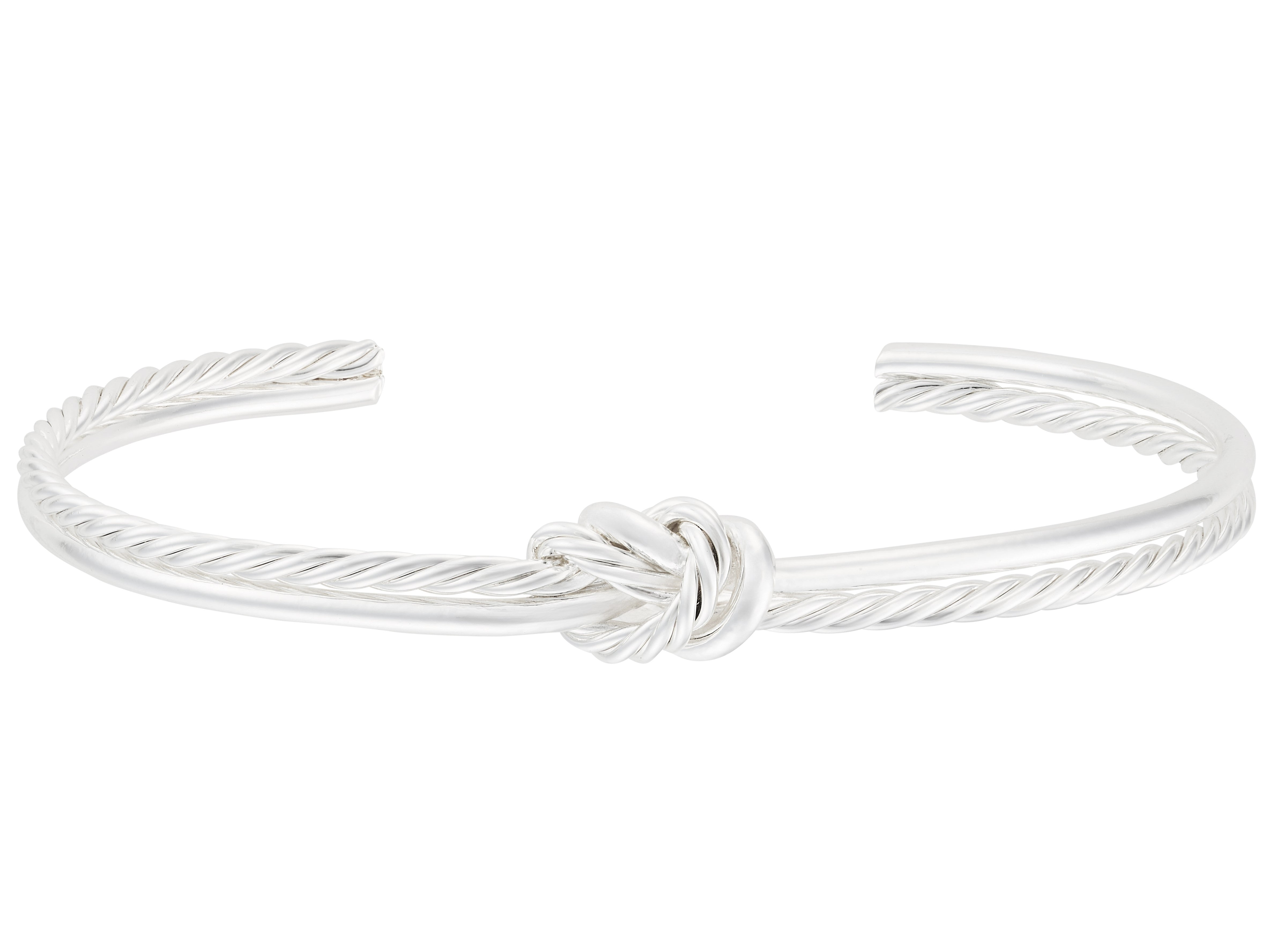 Add a touch of whimsy to your wrist with the Indulgence Silver Twist Knot Cuff Bangle. Its playful twist design wraps around your arm, making every gesture a stylish statement. Perfect for mixing and matching or wearing solo to brighten your day.