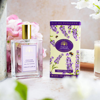 Housed in vintage inspired packaging, this English Lavender Eau de Toilette is fragranced with calming notes of lavender and rosemary, with a fresh character from a touch of mint. A blend of hay, dried lavender flowers and vanilla creates the base together with cedar and musks.