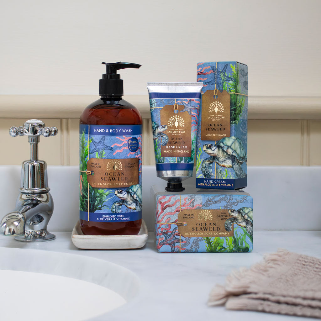 Experience luxury self-care with this Anniversary Ocean Seaweed Hand Cream. Beautifully fragranced and expertly crafted from quality ingredients, this moisturising hand cream is enriched with aloe vera and shea butter. Its non-greasy formula absorbs easily, leaving your skin scented and nourished. Presented in aluminium tubes with fully recyclable packaging adorned with charming illustrations, our eco-friendly creams make the perfect gift or an ideal for on-the-go solution to keep hands hydrated.