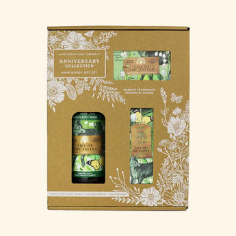The luxury products within the Anniversary Lily Of The Valley Hand and Body Gift Box are perfect for bathroom and kitchen basins.