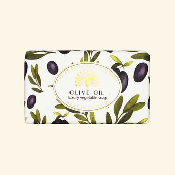 Indulge in the everyday use of a vegan friendly, luxury soap bar. Made using pure vegetable oils and enriched with shea butter to keep your skin feeling nourished. This Vintage Olive Oil Soap is part of our Vintage Collection of soaps, designed to capture traditional styles, wrapped in fully recyclable paper, and decorated with vintage-inspired artworks. A sumptuous treat for yourself or a token gift for a loved one.