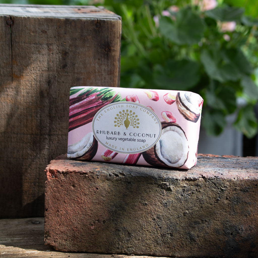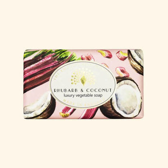 Experience luxury self-care with this Vintage Rhubarb and Coconut Soap. Generously fragranced and expertly crafted from pure vegetable oils and enriched with shea butter, this vegan-friendly soap produces a rich, silky lather that scents and nourishes your skin. Presented in fully recyclable packaging with no plastic waste and adorned with charming illustrations, our eco-friendly soaps are the perfect gift or indulgent treat for yourself.