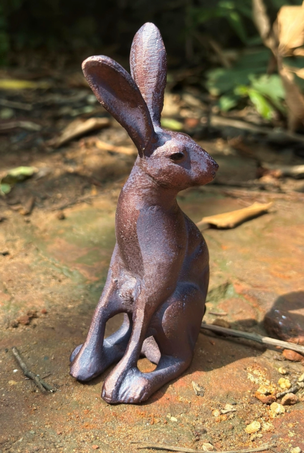- Delightful Sitting Hare garden sculpture made from solid cast aluminium with a hand finished aged bronze
