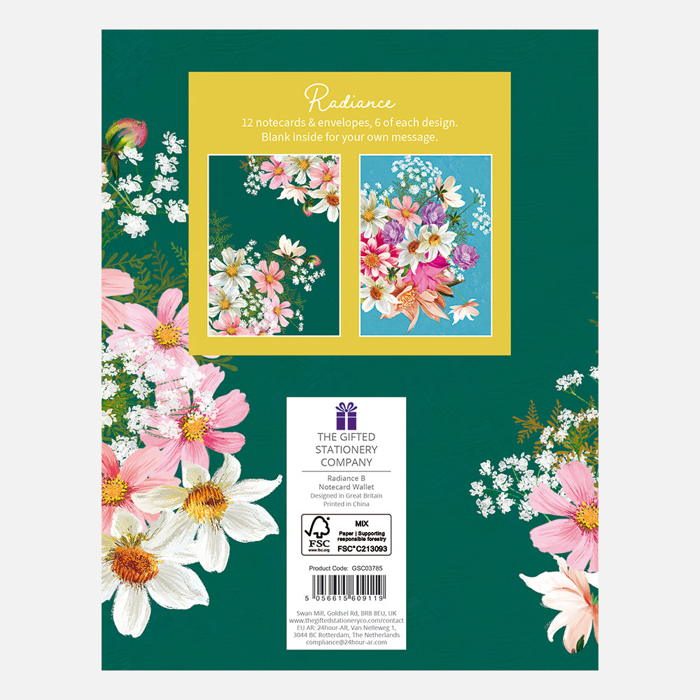 Always have the perfect greeting card at the ready with our notecard wallets containing 12 notecards across 2 different stunning designs. Each notecard is blank inside and accompanied by a white envelope. Card size 126 x 176mm.