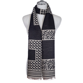 Elevate your collection with this sophisticated patchwork-patterned scarf. Featuring a mix of animal prints and geometric shapes, this scarf offers a refined yet distinctive look.