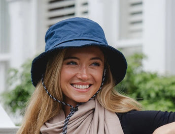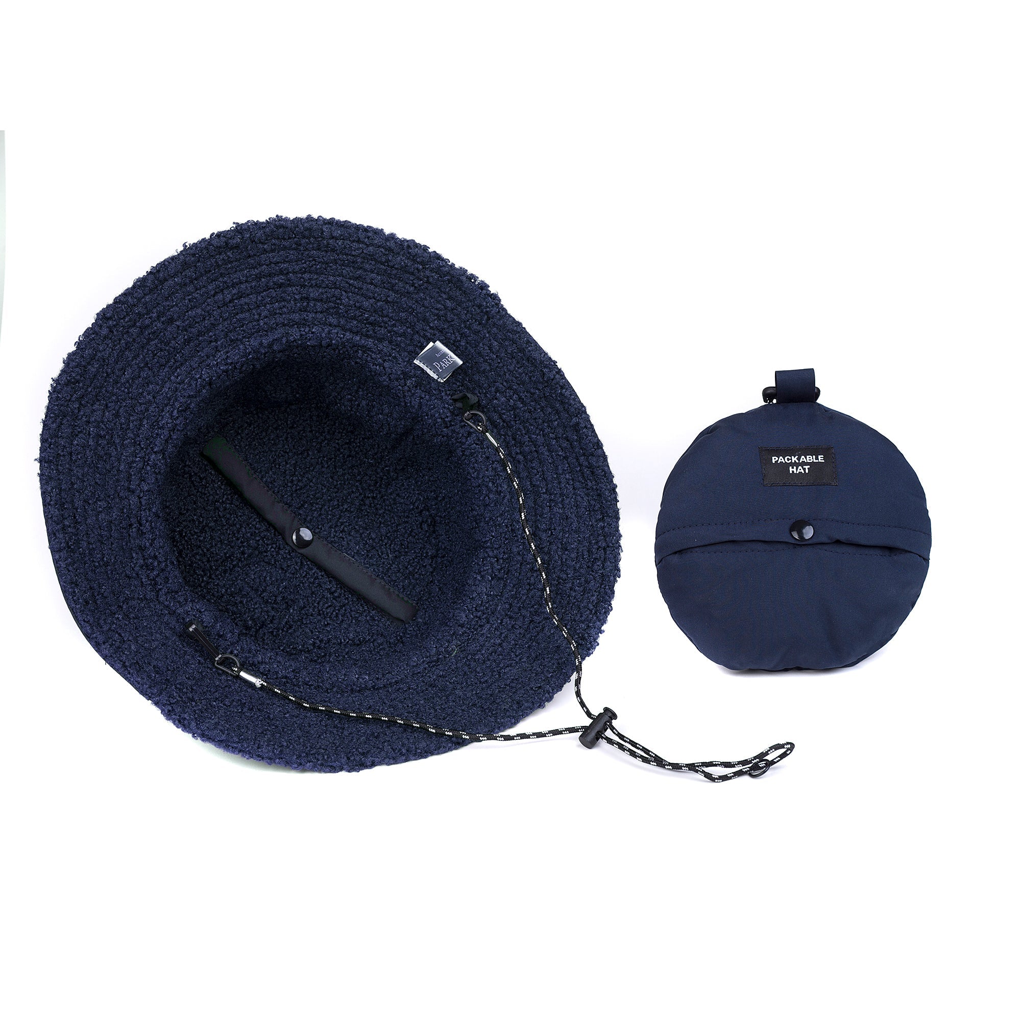 Stay stylish and dry with our navy waterproof bucket hat. A fashionable and versatile design that reverses to fold into a convenient carry pouch. Part fleece lining for added warmth and comfort and adjustable sizing.