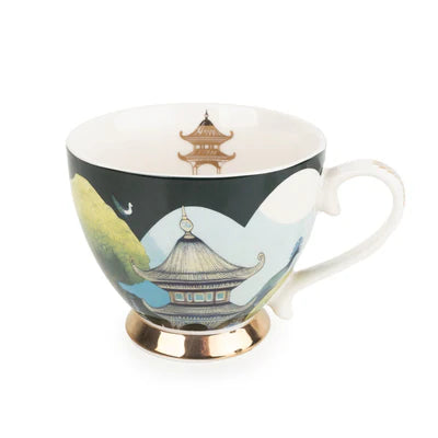 The Footed Mug from The Silk Road Collection - Bukhara is a majestic piece that captures the essence of ancient Eastern landscapes. Crafted with a robust, footed base and a gracefully curved handle, this mug is distinguished by its intricate depiction of Bukhara's historic architecture. The lush green and serene blues blend with subtle earth tones to evoke the spirit of a time-honoured journey along the Silk Road. This exquisite mug is not only a functional item but also a collector's piece that brings a touch of historical elegance to any tea-time setting. Ideal for those who cherish art and history, it makes a perfect gift or a splendid addition to any fine China collection.