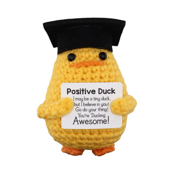 Meet your new feathered cheerleader! This adorable crocheted graduation duck is here to celebrate your achievements in the most quacktastic way possible. Handcrafted with care, this tiny but mighty companion features charming details and a graduation cap that screams "I'm proud of you!" Perfect for decorating a desk, shelf, or gifting to a graduate who needs a little encouragement. With its playful personality and soft texture, this little duck is ready to remind you that you're absolutely ducking awesome!