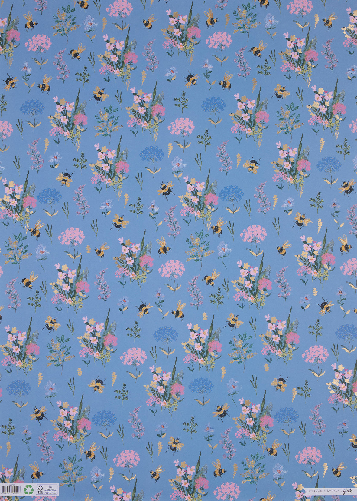 Add a splash of whimsy to your gifts with the Glick Blue Bee Wrapping Paper Sheet. Bright blue background buzzing with cheerful bees creates a fun, playful vibe perfect for birthdays, celebrations, or just because. This vibrant sheet makes your presents as delightful on the outside as they are inside!