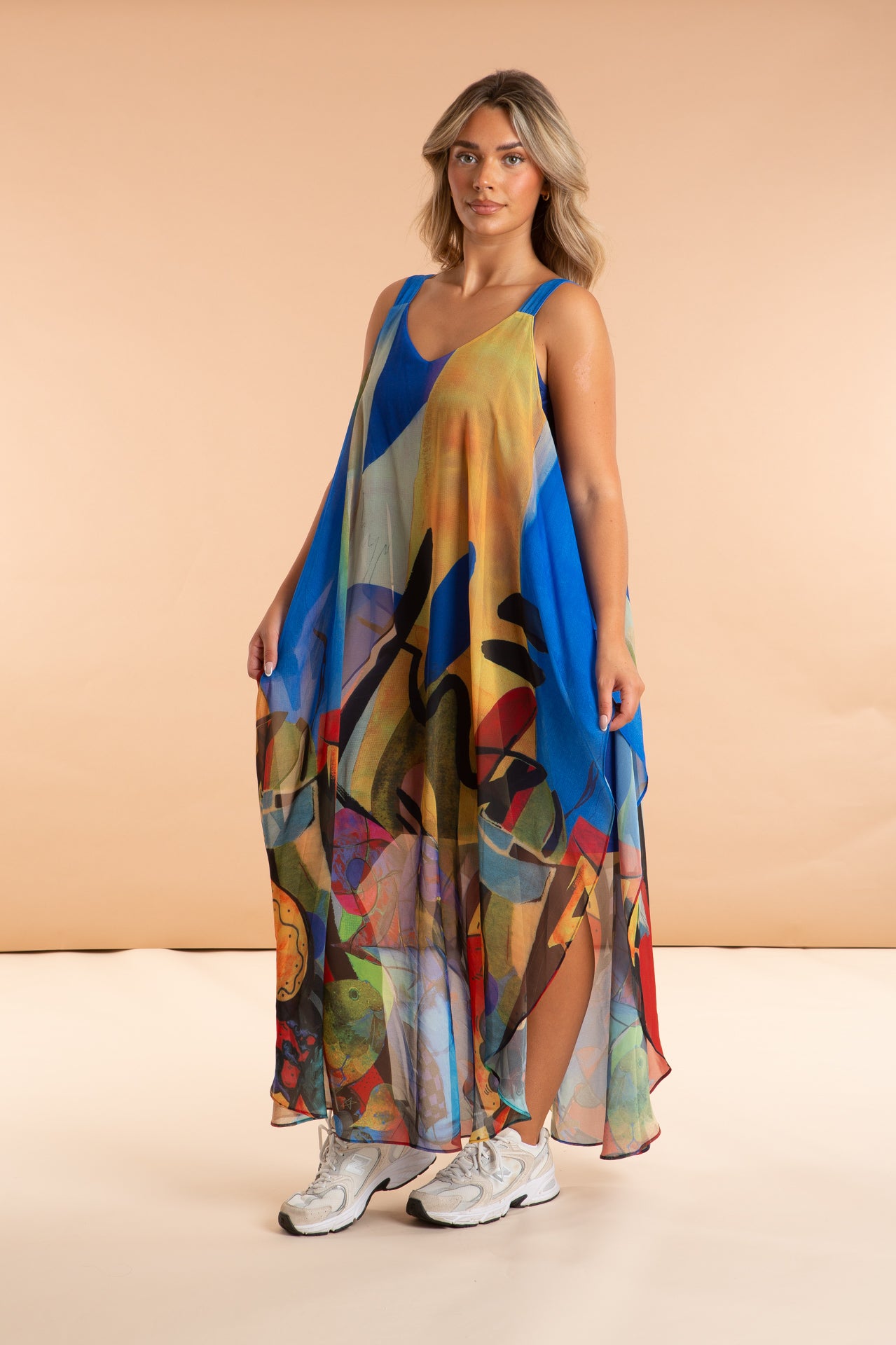 This playful two-layer summer dress in a vibrant blue is crafted from 100% polyester, offering a light and breezy feel perfect for sunny days. Available in sizes S to XL, it combines comfort with a flirty silhouette that moves with you. Ideal for garden parties or casual outings, this dress adds a splash of fun to your warm-weather wardrobe.