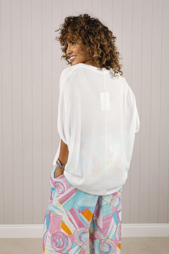 Get ready to stand out in this V-Neck Crinkled Top! Its unique texture adds a touch of quirkiness to any outfit. Perfect for a fun and playful look, this white top will surely turn heads.