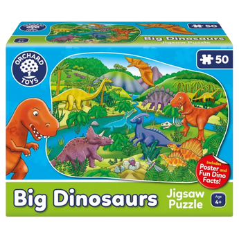A colourful 50 piece dinosaur jigsaw puzzle.