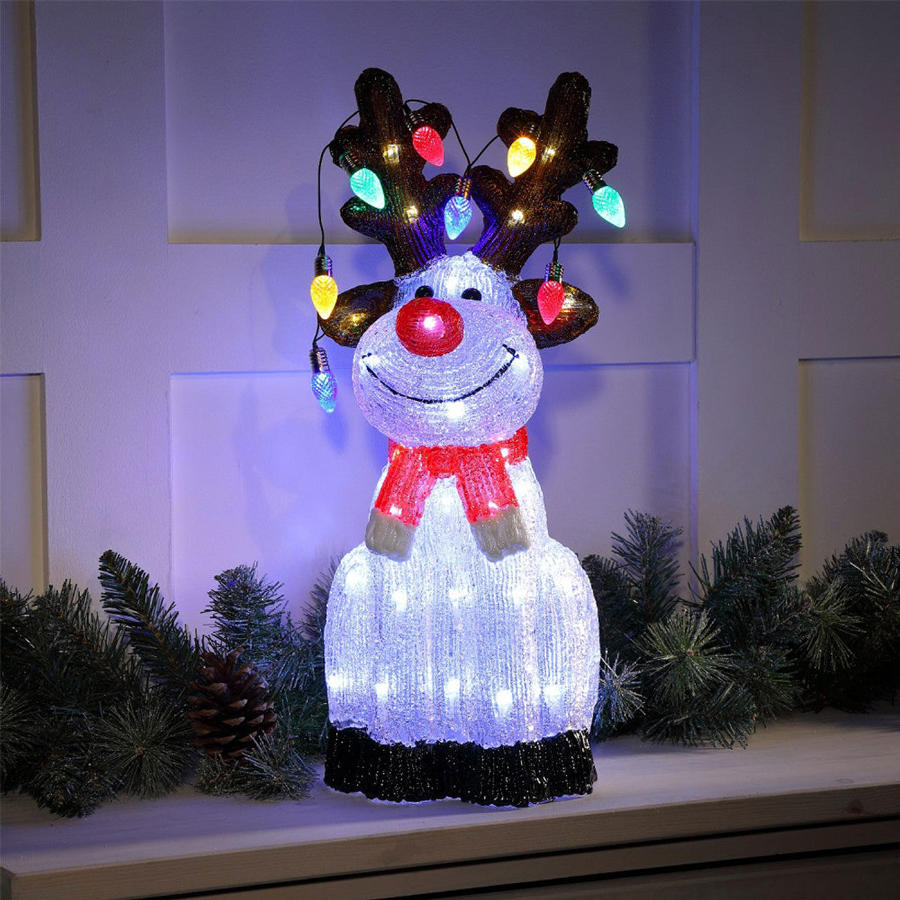 Light up your festive season with the Noma 54cm Acrylic Reindeer, featuring 48 bright white LEDs and 8 twinkling multi-coloured lights. Standing 54cm tall and equipped with a 10-metre lead, it’s perfect for both indoor and outdoor cheer—just keep the transformer cosy indoors. Plus, the handy Noma easytimer lets you set the perfect glowing schedule without any fuss. Watch your holiday decor come to life with playful sparkle and easy magic!