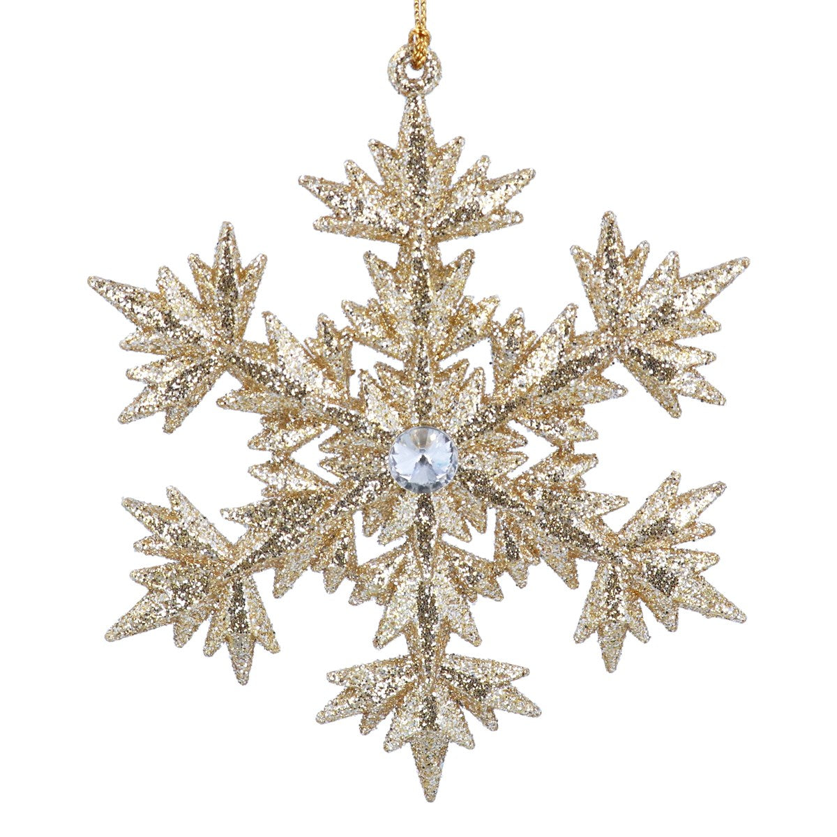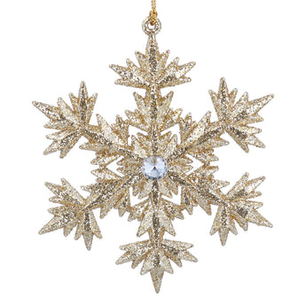 Add a touch of festive sparkle with this 13cm acrylic gold 6-point snowflake decoration. Its lightweight design makes it perfect for hanging anywhere—windows, trees, or doorways—bringing shimmering holiday cheer to your space with ease.