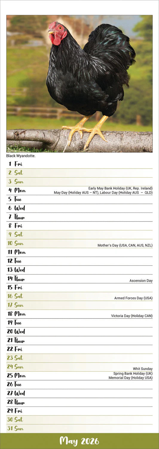Celebrate the charm of your feathered friends all year long with the Chickens - Slim Calendar 2026. Compact and stylish, this calendar keeps you organized while bringing a daily dose of clucky fun to your space. Perfect for chicken lovers, it fits neatly anywhere and makes scheduling a delightful task every day.