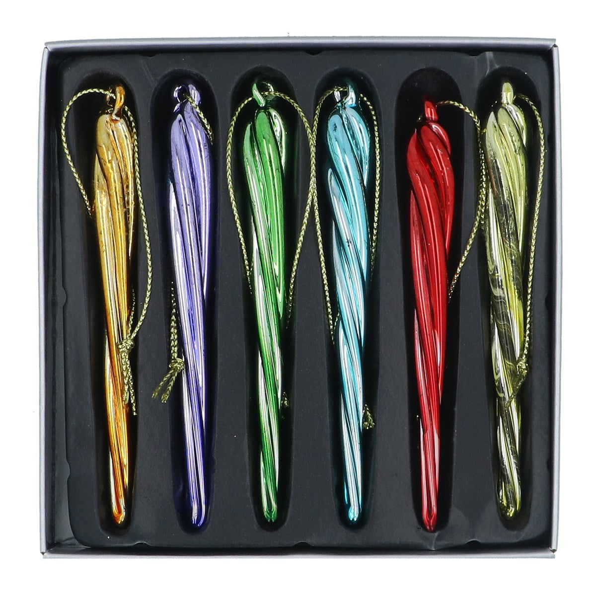 Add a splash of festive charm with these 12cm glass icicles in six brilliant colours. Beautifully boxed, they’re perfect for brightening your Christmas tree or gifting to someone special. Hang them up and let the holiday sparkle begin!