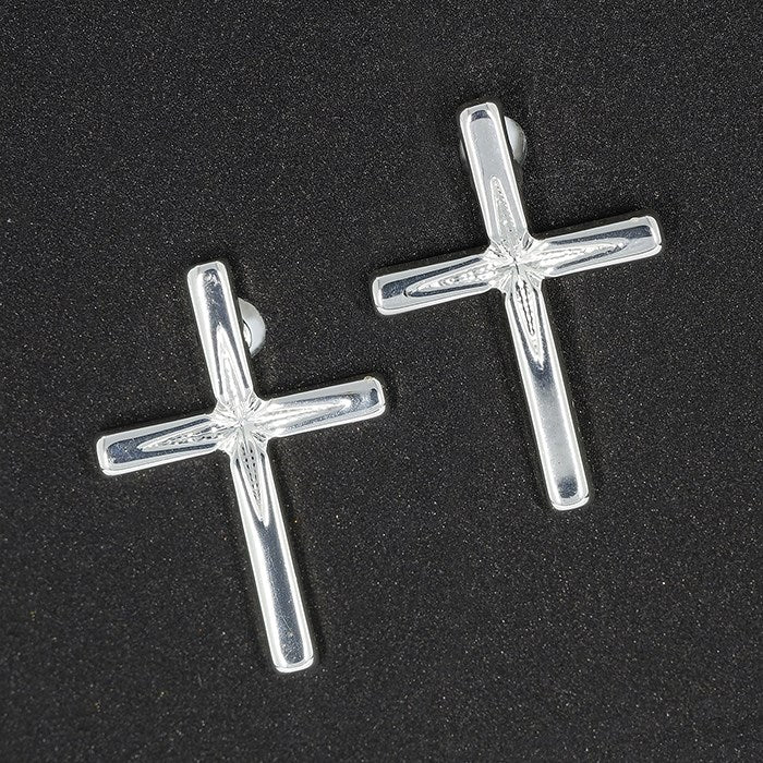 Diamond Cut Silver Plated Cross Stud Earrings