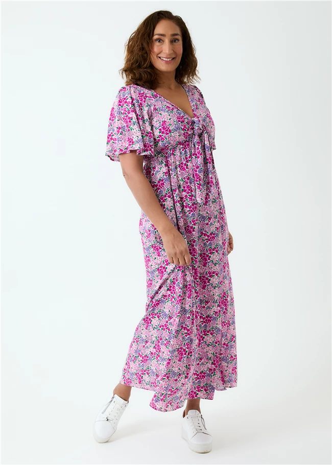 Add an element of elegance to your summer wardrobe with our ditsy print bust tie dress. The adjustable tie and under bust elastic ensures a figure flattering look, while the floaty short sleeves fall add a feminine flair.
