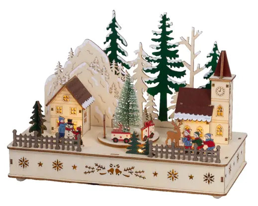 Bring festive charm to your space with the Wooden Scenery - Snowy Village. This delightful set captures the magic of a winter wonderland with charming wooden houses dusted in snow. Perfect for adding a whimsical touch to your holiday décor or creating a cozy village scene that sparks joy and imagination. Let your creativity snowball with this playful and timeless decoration!
