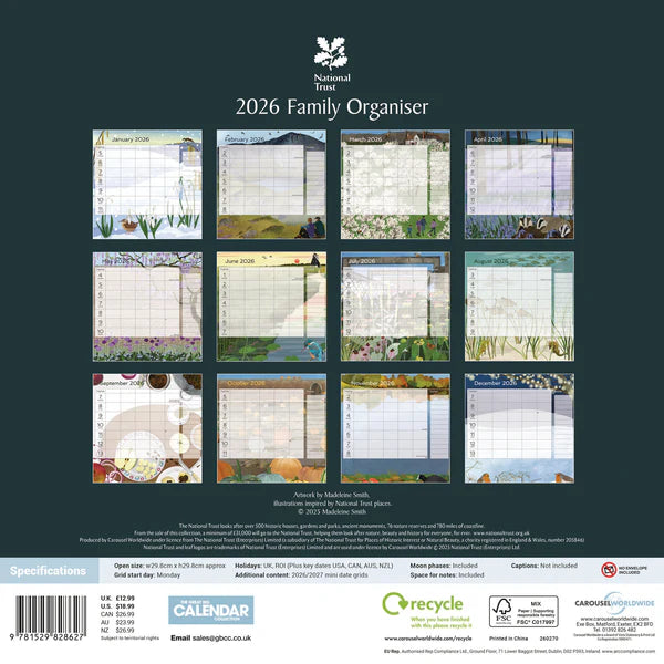 Get organized with the National Trust WTV Planner Wall Calendar 2026! Packed with delightful scenes from beloved National Trust properties, this calendar makes planning your year a joy. Perfect for marking important dates or simply daydreaming about your next countryside adventure, it brings a touch of charm and whimsy to any wall. Stay on track while enjoying stunning views all year long!