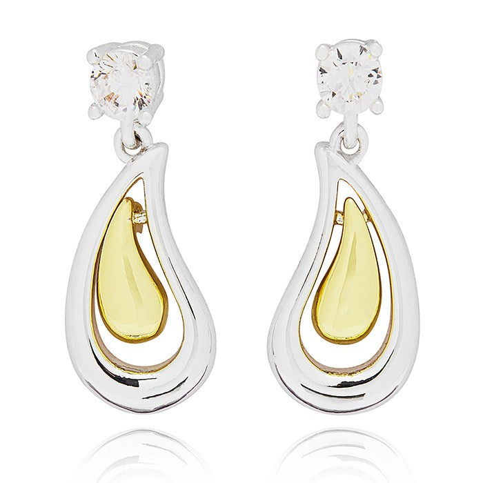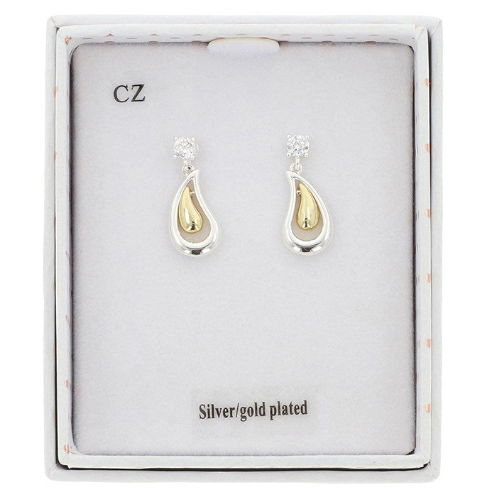 Catch the light with these charming two-tone droplet earrings, where silver and gold dance together in perfect harmony. Each delicate raindrop shape brings a touch of whimsy to your everyday look, whether you're dressing up for a special occasion or adding sparkle to your casual style. Lightweight and versatile, these beauties pair effortlessly with any outfit. A little splash of elegance that won't weigh you down!