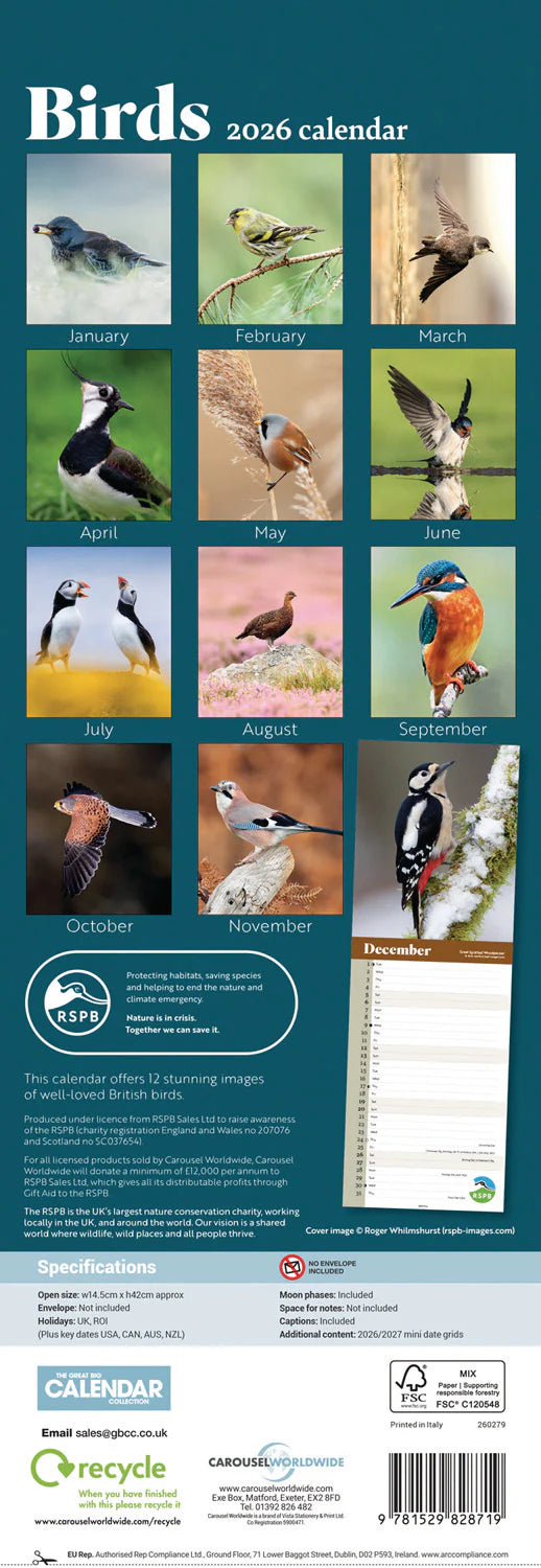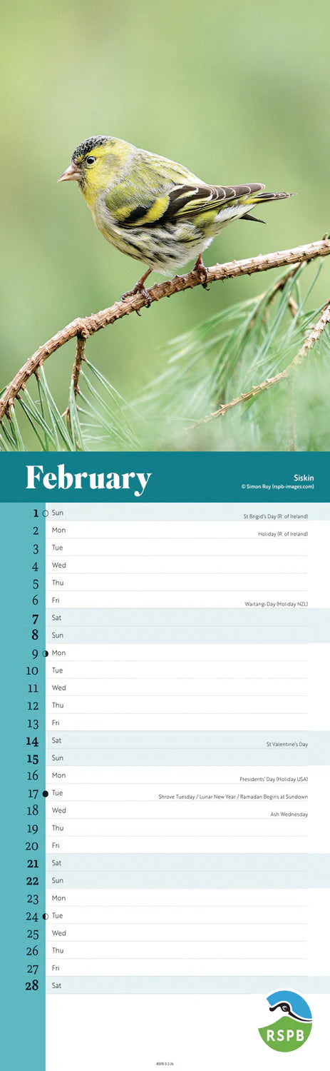 RSPB Birds - Slim Calendar 2026