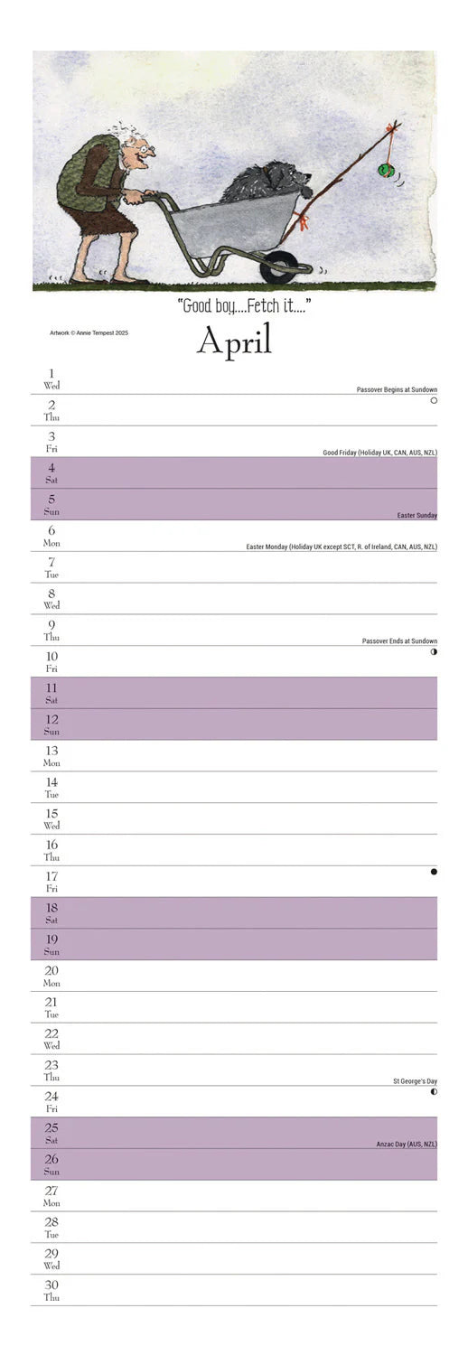 Celebrate every day with a smile using the Tottering By Gently Dogs Day Slim Calendar 2026! Packed with charming and playful dog illustrations, this slim calendar fits perfectly in any space, bringing a touch of canine whimsy to your year. Enjoy a delightful canine companion for each month, making planning your days a bit more fun and furry. Perfect for dog lovers who appreciate gentle humour and heartwarming moments!